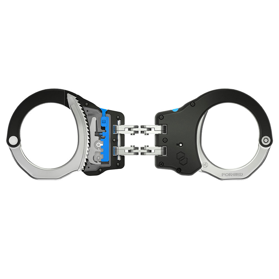 Forged aluminum frame: Forged from 7075 T6 ordnance-grade aluminum, Ultra Cuff frames are rigid and incredibly strong, yet lightweight. Forging—as opposed to the stamped steel parts found in other restraints—also eliminates rough or sharp edges; the smooth, rounded Ultra Cuff frame is more ergonomic, and safer for both officer and subject.